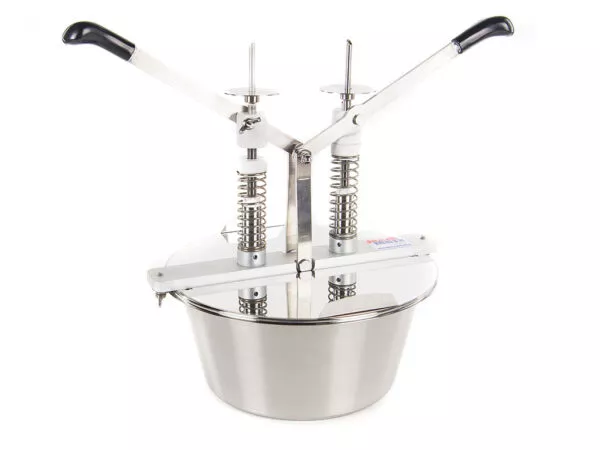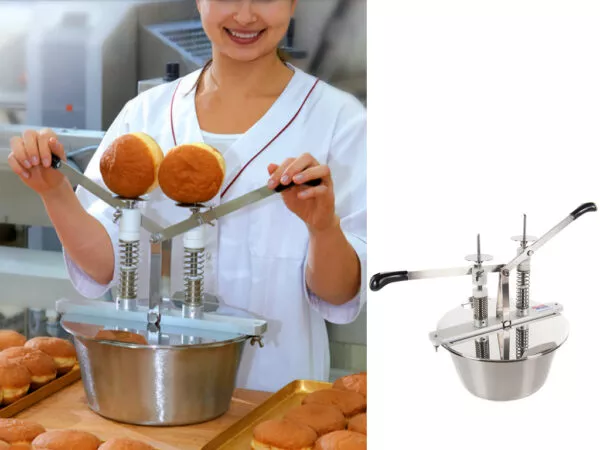 Die Gebäckfüllmaschine als Tischgerät mit einem 5-Liter-Edelstahlbehälter ist die ideale Lösung für professionelle Bäckereien und Konditoreien. Mit zwei Deckeln ausgestattet und einer präzise regulierbaren Füllmenge von 0 bis 10 g ermöglicht dieses Gerät ein gleichmäßiges und sauberes Befüllen von Gebäck in großen Mengen. Alle Teile, die mit Lebensmitteln in Berührung kommen, sind aus robustem und hygienischem Edelstahl gefertigt, um höchste Standards in der Lebensmittelsicherheit zu gewährleisten. Perfekt für die effiziente Verarbeitung von Füllungen in der Backstube.