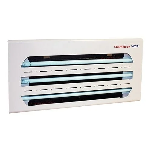Ein elegantes und ultraschlankes Gerät. Die energieeffizienten und umweltschonenden T5 UVA Röhren werden durch ein elektronisches Hochfrequenz Vorschaltgerät der neuesten Generation betrieben, wodurch der Stromverbrauch verringert wird. Einfache und schnelle Wartung garantiert. Wirkungsbereich 150 m², 3 x 14 Watt Röhren.