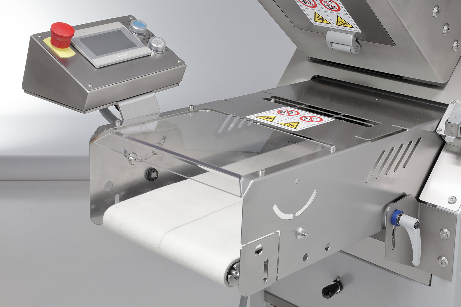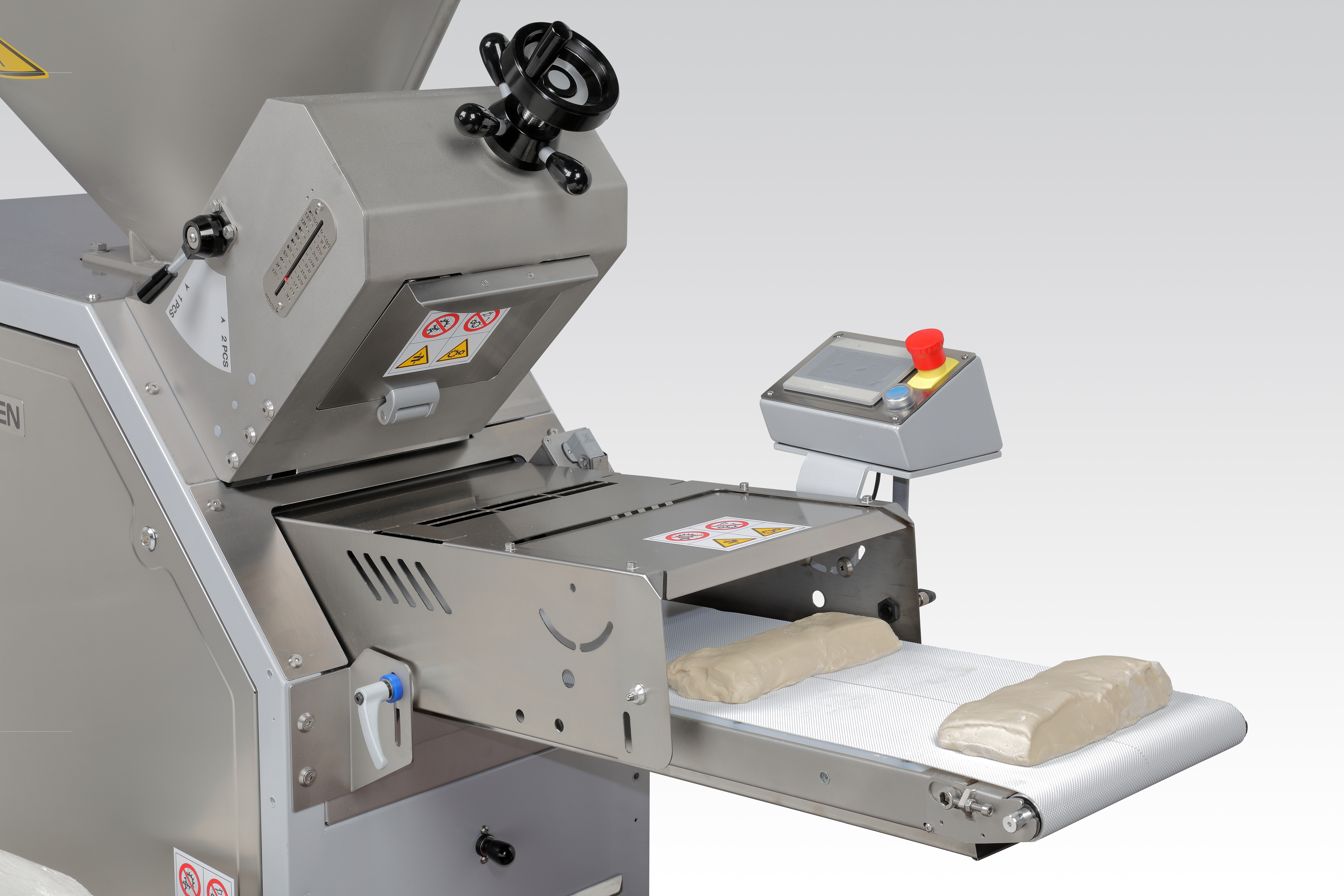 (Ersetzt das Touchscreen-Bedienfeld)Funktionen:• Geschwindigkeitskontrolle• Steuerung der SplitterbandgeschwindigkeitHinweis:• Ohne Auto-Stop und Einstellung für verschiedene Teigarten• Kein Stückzähler