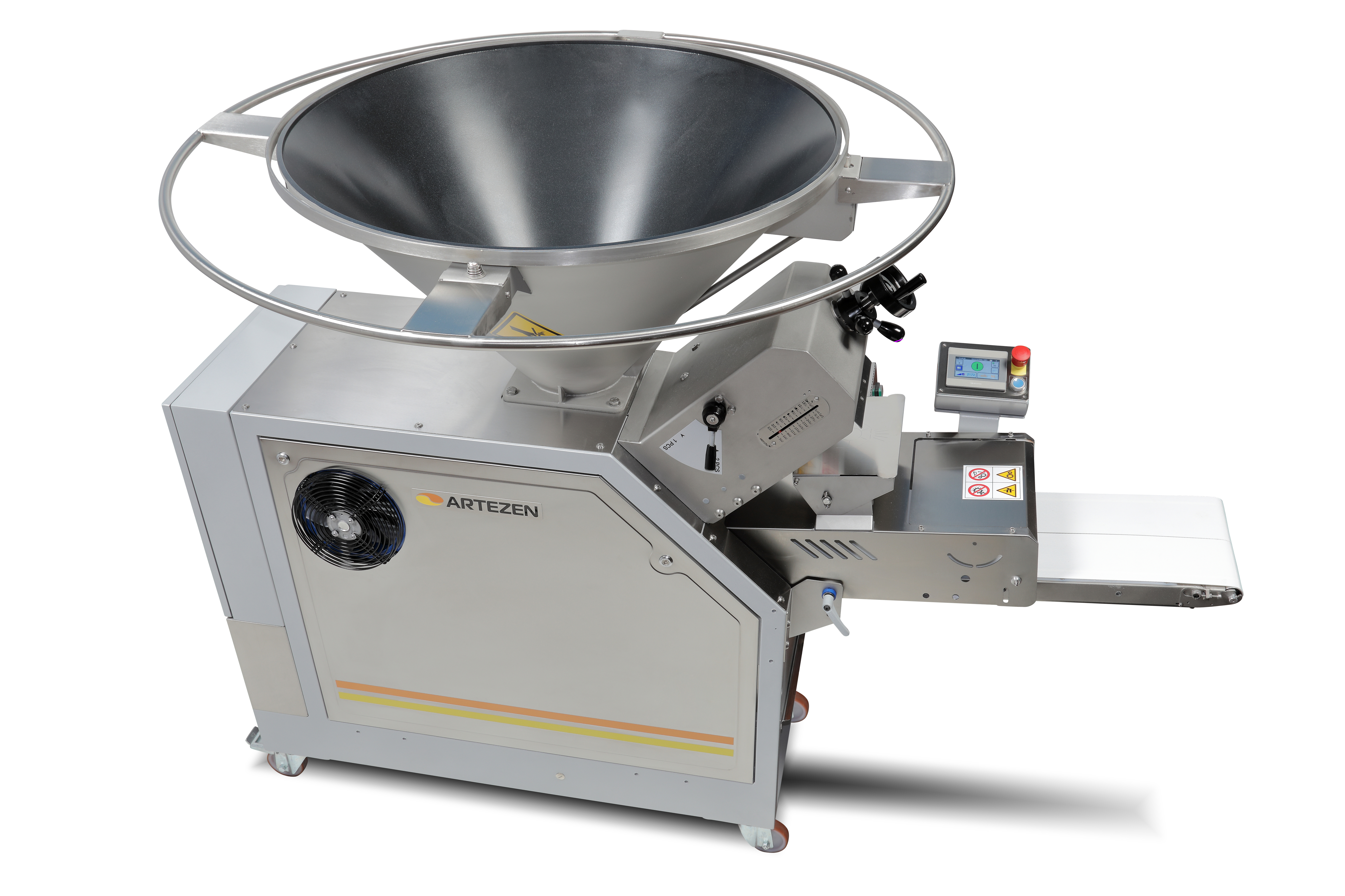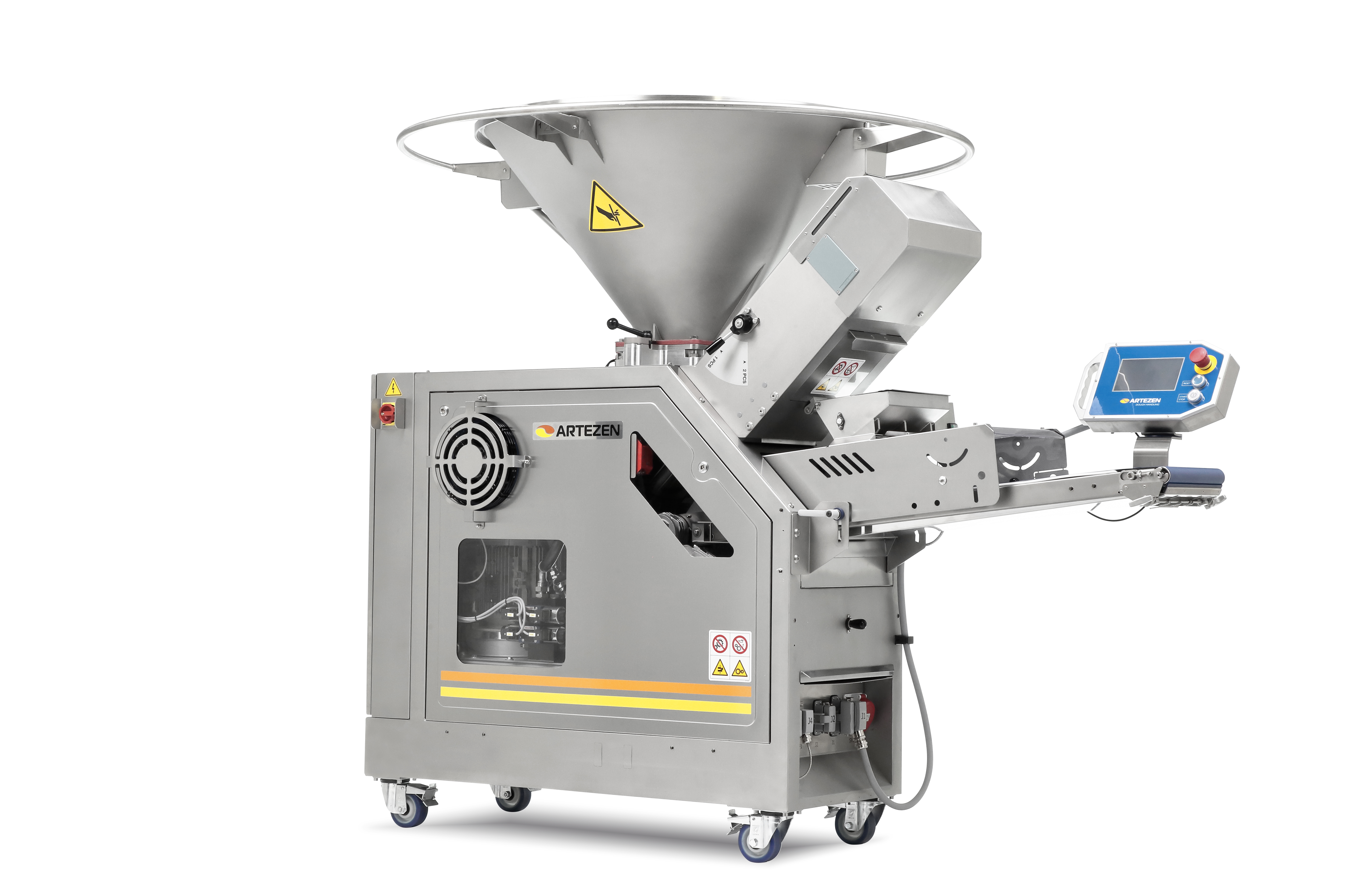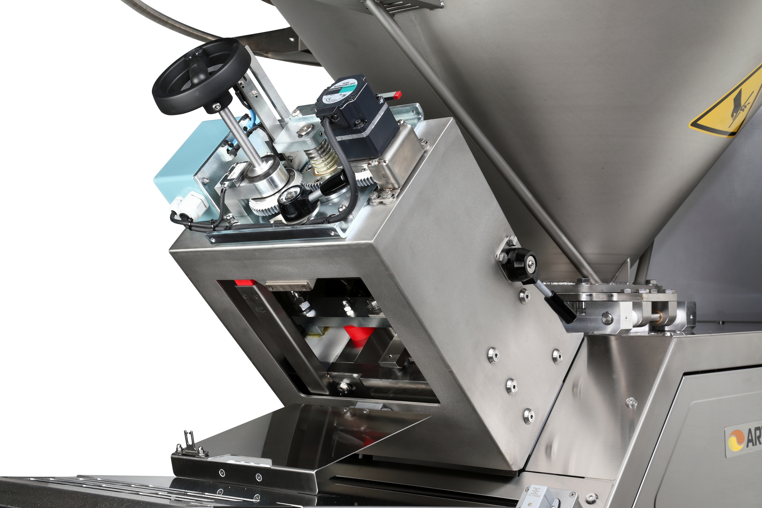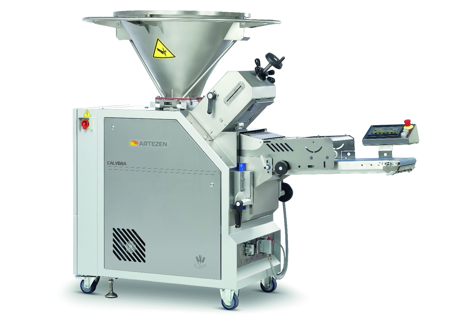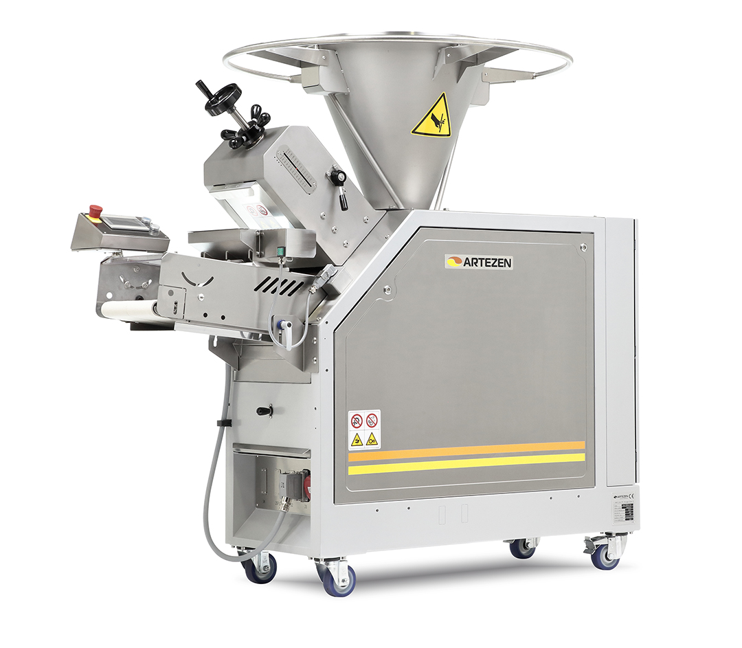Dank des klappbaren Trichter ermöglicht die zusätzliche Einlaufhöhe von 60 mm eine bessere Teigaufnahme und Flexibilität im Produktionsprozess.Öffnung wählbar: links, rechts oder hinten.Eigenschaften & Vorteile:✔ Einfache Reinigung der Vorportionierungszone – Für maximale Hygiene & Wartungsfreundlichkeit✔ Extra Einlaufhöhe (60 mm) – Mehr Flexibilität bei der Teigzufuhr✔ Individuelle Öffnungsoptionen – Wählbare Öffnung nach links, rechts oder hinten✔ Nicht empfohlen für Hart- oder Pizzateig – Optimal für weiche & hydratisierte TeigeDie Artezen Calybra ist die ideale Lösung für eine präzise und hygienische Teigportionierung in modernen Bäckereien.ng anstreben.