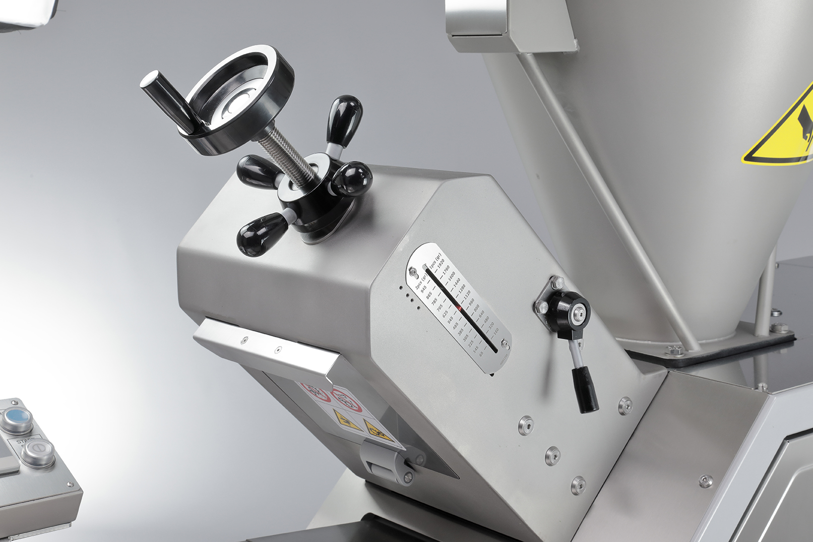 Cylbra ist wahlweise mit einem Front- oder Seitenauslauf, sowie einer großen Auswahl an Trichtergrößen erhältlich, die zu Ihrer Produktionslinie passen. Ein optionales Memory Pack bietet Ihnen die Möglichkeit das gewünschte Gewicht aus einem Bereich von bis zu 250 Rezepten automatisch einzustellen.